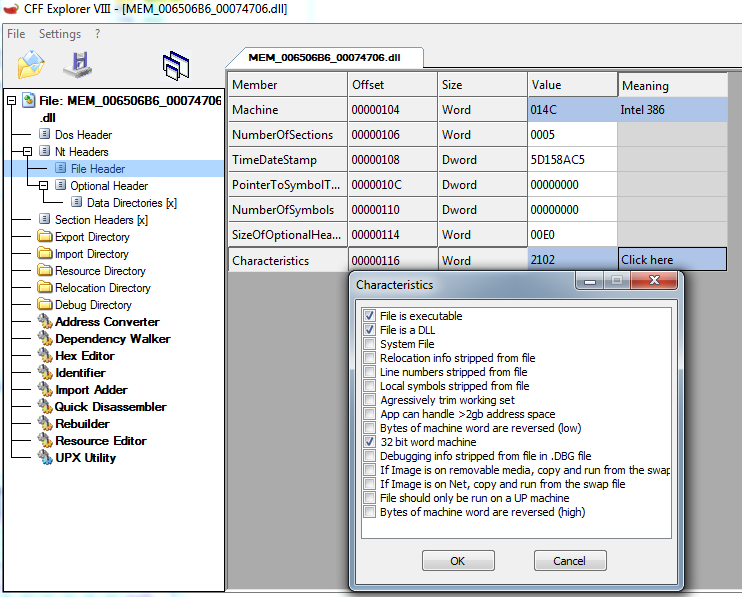使用CFF Explorer查看,是一个DLL,只有一个导出函数Loader